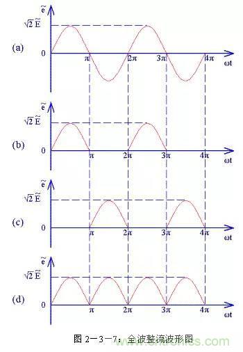 全波整流電路每個整流二極管上流過的電流只是負載電流的一半,比半波整流小一倍。