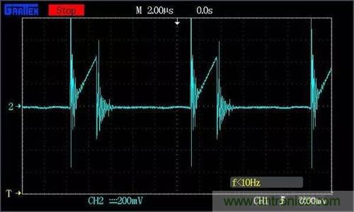 輸出濾波器對升壓拓撲或其它任何帶有斷續電流模式的拓撲之所以重要,是因為它在開關B內電流具有快速上升和下降時間。這會導致激勵開關、布局和輸出電容中的寄生電感。其結果是,在實際使用中,輸出波形看上去更像圖2而非圖1,哪怕布局布線良好并且使用陶瓷輸出電容。