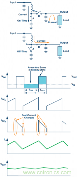 本文示例電路將采用升壓轉換器,但結果可以直接應用于任意DC-DC轉換器。圖1所示為升壓轉換器在恒定電流模式(CCM)下的基本波形。