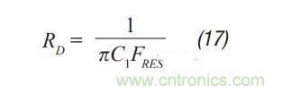 第5步:RD可以通過公式17計算得出。FRES通過公式7計算得出,忽略CD。這是一個很好的近似,因為Rd通常足夠大,從而CD幾乎不影響濾波器諧振位置。