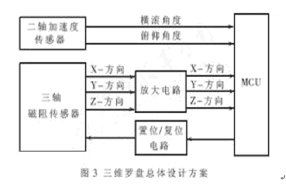 羅盤是一種重要的導航工具,已廣泛應用于飛機和航海導航等領域。一般在飛機和航海導航系統中使用的慣性導航系統由于價格昂貴、結構復雜、導航誤差隨時間累計等原因而不適合車載使用;傳統的羅盤雖然價格便宜,但不能工作于像行駛的汽車這種不穩定的環境中。另外,傳統羅盤不能夠電子輸出,其信號不能集成到汽車的控制系統中,給實現基于精確導航的智能交通帶來了不便。