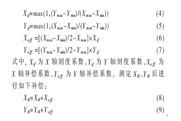 Ymin),代入式(4)、(5)、(6)、(7)中,可以得到Xo f f 、Yo f f 。