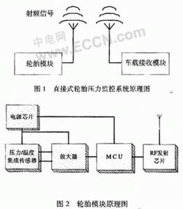 目前,輪胎壓力監測系統主要有兩種解決方案,直接系統和間接系統。直接式輪胎壓力監測系統是利用安裝在每一個輪胎里的壓力傳感器直接測量輪胎的氣壓,并對各輪胎氣壓進行顯示及監控,當輪胎氣壓太低或有滲漏時,系統會自動報警。間接式輪胎壓力監測系統是通過汽車ABS系統的輪速傳感器來比較輪胎之間的轉速差別,以達到監控胎壓的目的,該類型系統的主要缺點是:①不能顯示出各條輪胎準確的瞬時氣壓值;②同一車軸或者同一側車輪或者所有輪胎氣壓同時下降時不能報警;③不能同時兼顧車速、檢測精度等因素。很明顯,直接傳感系統更有效。