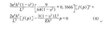 其中坐標系是平面直角坐標系,其原點是正方形薄膜中心,坐標軸平行于薄膜的邊。其中h和L分別是薄膜的厚度和邊長。f(p)是一個關于薄膜絕對壓強的函數。f(p)由方程(4)決定,即