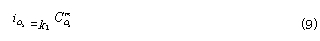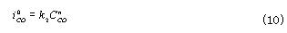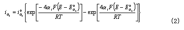 式中,  為CO的平衡電勢 ,  為CO的交換電流密度;a為CO氧化反應的電荷傳遞系數。——— 在平衡條件下,上述兩反應的電流密度相等,所以有