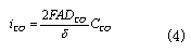 式中,iCO為CO氧化反應的電流密度 CCO為CO的體積濃度;DCO為CO的擴散系數  擴散邊界層厚度。A電極的擴散面積; 如果是電荷傳輸控制,則根據Butler-Volmer速度控制機理有: