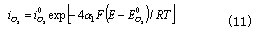 因氧氣分壓較大,一般由電荷傳輸過程控制,根據Butler-Volmer方程得到反應速率為: