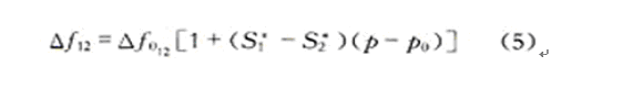 當傳感器表面有壓力作用時,無線SAW壓力傳感器的壓電薄膜就會產生形變,薄膜材料的應變會使得聲表面波傳播速度發生變化,從而使聲表面波的中心諧振頻率發生變化。通過無線檢測SAW壓力傳感器的中心諧振頻率變化,就能得到壓力變化的數據。假設溫度對兩個單端諧振器的中心諧振頻率影響很小,則兩諧振器中心頻率差的變化與所測壓力之間的關系式可表示為