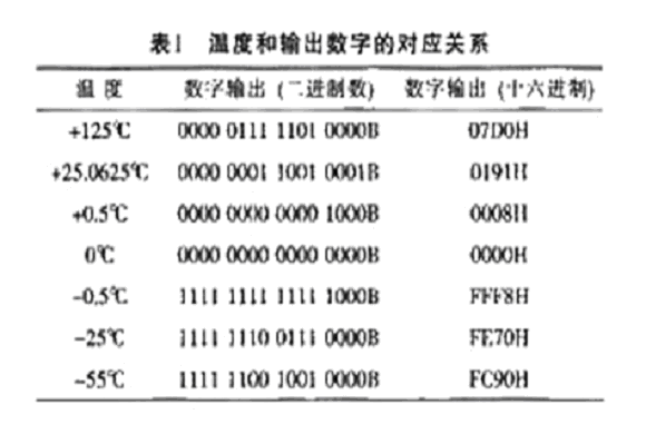 DS18B20溫度傳感器主要用于對溫度進行測量,數據可用16位符號擴展的二進制補碼讀數形式提供,并以0.0625℃/LSB形式表示。具體的溫度和數字量的關系如表1所列。