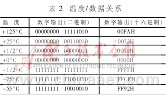 在實際應(yīng)用中,測量溫度往往在0°C以上,此時可只取16位二進(jìn)制溫度輸出的低8位,即1個字節(jié),這樣將使計算和編程工作更為便利。