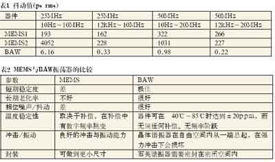 該研究采用已有測量技術對商用BAW與MEMS振蕩器的多種不同電特性進行了比較,在此基礎上進行了部分討論,并在表2中做了相應總結。結果表明,兩種技術是不可互換的。頻率偏差、MEMS振蕩器的低Q值與數字溫度補償都造成了許多應用中不可接受的頻率波動。