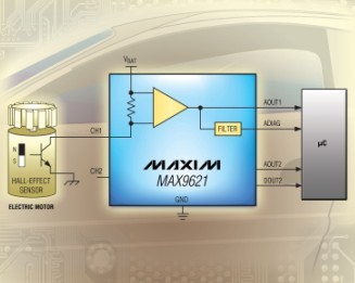 Maxim推出帶有模擬和數字輸出的雙通道、2線霍爾傳感器接口MAX9621。該器件可通過在模擬輸出端對線性信息對應的傳感器電流進行鏡像或通過經過濾波的數字輸出,使微處理器能夠監測霍爾傳感器的狀態??删幊淘O置數字輸出的輸入電流門限。高邊電流檢測架構省去了地回路引線,且不會發生地電位偏移,因而可降低50%的走線成本。MAX9621非常適合用于汽車車身控制器(例如:車窗升降控制器)。