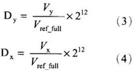 ADS7846內部可以通過寄存器的設置A/D轉換器的分辨率設為8位或12位,在本系統中A/D轉換器的分辨率取12位。則P點的二進制輸出代碼為: