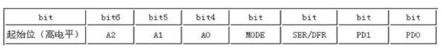 bit7指明發送命令開始,高電平有效。A2:A0用于選擇數據輸入通道,101選擇X坐標測量,001選擇Y坐標測量。MODE將內部模數轉換器的分辨率定義為8位(MODE=1)或12位(MODE=0)。SER/DFR為單端/雙端參考電壓選擇位。PD1:PD0根據省電模式的需要進行選擇設置。這些命令控制位的設置將在程序代碼部分得以應用。