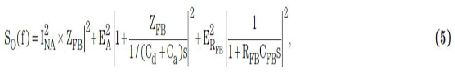 且s = 2πfj.方程式5為電荷放大器的經典噪聲解決方案。相對于Cd,Ca一般非常小。因此,方程式5可以簡化為: