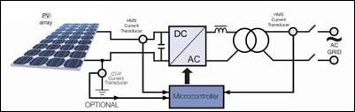 通常在剛好在PV 方陣后使用最大功率點跟蹤(MPPT)組件來確保方陣工作在其最大功率運行水平。通過使用用于跟蹤功能的電流和電壓傳感器,應用一種特殊軟件算法和專用電子元件一起來控制電池板(電池)的工作點。一般來說,一臺電流傳感器可用于測量單相輸出(供到電網的電流),而另一臺傳感器可用于測量輸入直流電流(10-25A)。在三相輸出的情況下,兩臺傳感器可用于測量三相輸出的交流電流。接入電網的DC/AC逆變器是一臺將直流信號轉換為正弦波的全橋逆變器。
