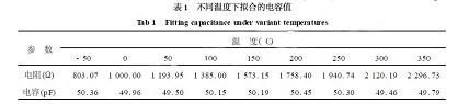 擬合參數(shù)最大時(shí)為5.037×10-8,最大相對(duì)誤差為0.78%。當(dāng)溫度變化時(shí),金屬鉑電阻值發(fā)生變化,在不同的溫度下擬合的電容值和溫度的關(guān)系如表1所示(加入1%的白噪聲)。