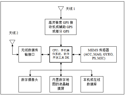 •無線數(shù)據(jù)傳輸接口,包括GSM/GPRS、WiFi、藍牙和RFID:無線數(shù)據(jù)接口的主要目的是接入互聯(lián)網(wǎng),檢索當前位置目標的在線數(shù)據(jù)庫,在等待GPS定位或沒有GPS信號時提供簡要的定位信息。如果建筑物內(nèi)預裝了發(fā)射器,其它的近距離無線連接如WLAN、藍牙和RFID也可以提供精度適當?shù)氖覂?nèi)定位信息。