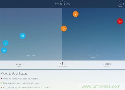 測(cè)試人員發(fā)現(xiàn),CubeSensors給出的這些信息較想象中更為有用。例如,產(chǎn)品提示一處起居室的溫度有點(diǎn)低,如果適當(dāng)提升溫度會(huì)讓人感覺更加舒適及放松。而在辦公室中,CubeSensors提示改善光照條件能夠幫助提升工作效率。在臥室中,產(chǎn)品給出了需要開窗以便改善空氣質(zhì)量的建議。用戶除了查看數(shù)據(jù)之外,還能看到應(yīng)用給出的實(shí)用建議,例如“盡快開窗”或“提升溫度會(huì)讓你感覺更加舒適”。盡管看起來(lái)似乎平淡無(wú)奇,但CubeSensors背后的團(tuán)隊(duì)表示,通過這些小建議,產(chǎn)品可以幫助用戶避免罹患感冒、過敏、頭疼等癥狀。