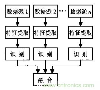 2.特征層融合:特征層融合屬于中間層次,先從每種傳感器提供的觀測數據中提取的有代表性的特征,這些特征融合成單一的特征向量,然后運用模式識別的方法進行處理。這種方法的計算量及對通信帶寬的要求相對降低,但由于部分數據的舍棄使其準確性有所下降。