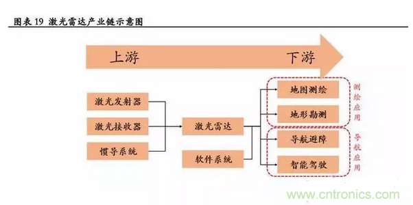 實際上,產(chǎn)業(yè)鏈的上游制造元件成本不高,不是構(gòu)成成本的主要因素;且因為激光雷達(dá)是下游測繪、導(dǎo)航等應(yīng)用的核心部件,目前產(chǎn)能稀缺導(dǎo)致供不應(yīng)求,呈現(xiàn)賣方市場,對下游有很強(qiáng)的定價權(quán),因此該產(chǎn)業(yè)鏈主要附加值在于激光雷達(dá)部分。