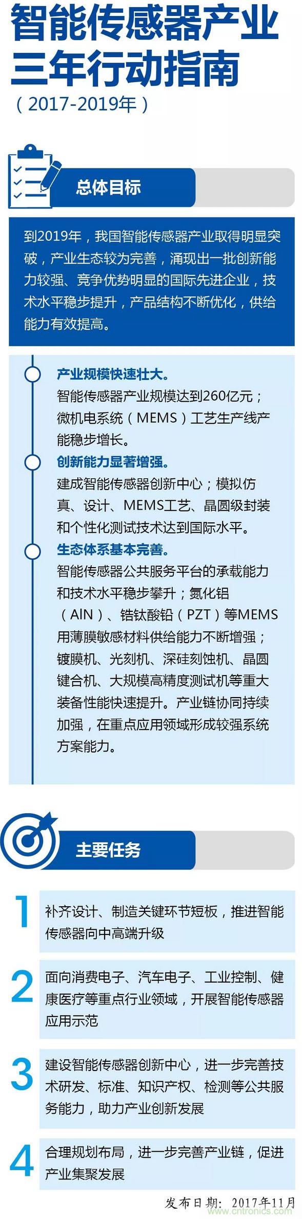 2017年,工信部發(fā)布了《智能傳感器產(chǎn)業(yè)三年行動指南(2017-2019年)》,提出了要在智能終端、物聯(lián)網(wǎng)、汽車電子等工業(yè)領(lǐng)域有所發(fā)展。據(jù)有關(guān)專家預(yù)計2019年中國的智能傳感器產(chǎn)值將達(dá)到35億美元,國產(chǎn)智能傳感器所占比重將達(dá)到25%以上,比之前比重提高一倍。