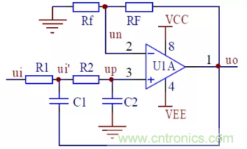 2單位增益二階壓控低通濾波器