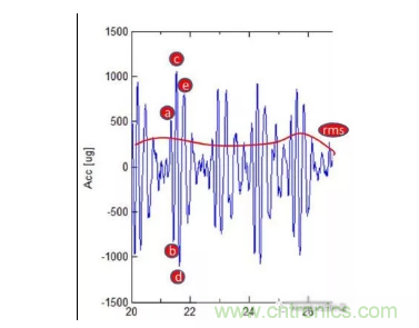心沖擊信號圖(BCG)監測心臟功能則沒有ECG的上述局限。心沖擊信號是血液流入主動脈、主動脈旋轉和血壓脈沖持續進入動脈引起的反沖信號。該運動主要沿著身體的縱向軸線,加速度幅度通常為1mg(1cm/s2)的量級。典型的BCG信號如下圖所示。