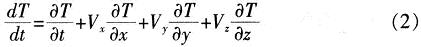 三維直角坐標系中的瞬態溫度場場變量T(x,y,z,t)滿足:
