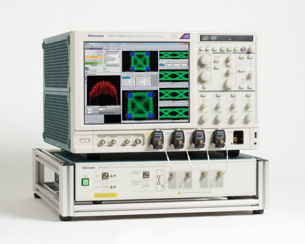 全球示波器市場的領導廠商泰克公司日前宣布,推出首個33 GHz帶寬的相干測試系統---OM4106D相干光波信號分析儀。這一業內最快的性能是通過與具有優異實時性能的 DPO70000D系列示波器的緊密整合而實現,連同具有最佳激光相位容限的專用內建算法、無碼型長度限制以及深度顯示能力,可對高性能光設計進行快速分析和調試。