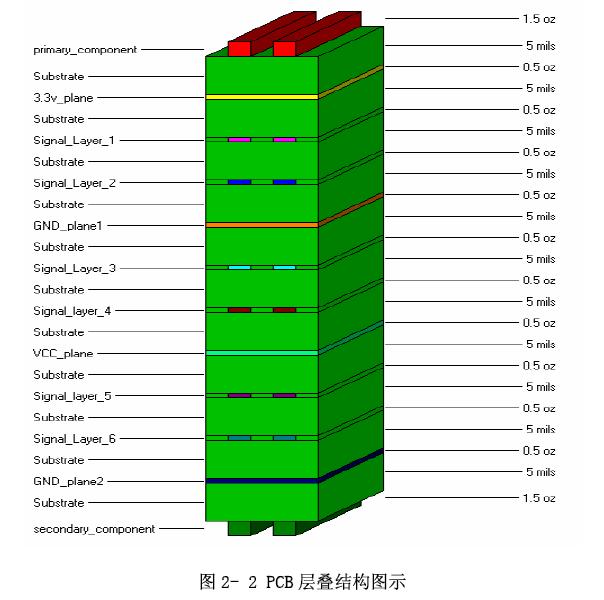 為了實(shí)現(xiàn)通量最小化,必須實(shí)現(xiàn)PCB板上信號(hào)層和參考層交錯(cuò)排列,這樣,每個(gè)信號(hào)層都有相鄰的參考層。考慮到本板上的芯片數(shù)多,特別密集,而且電氣網(wǎng)絡(luò)也特別多,所以采用多少層的PCB要仔細(xì)安排,多了或少了都不好:如果層數(shù)太少,布線將變得很困難,甚至可能完不成布線。當(dāng)然在布線過程中如果感覺布線空間不夠,可以再增加層數(shù),但加層后要對(duì)已完成的布線做許多調(diào)整,重新安排一些走線規(guī)則,這將增加許多工作量。